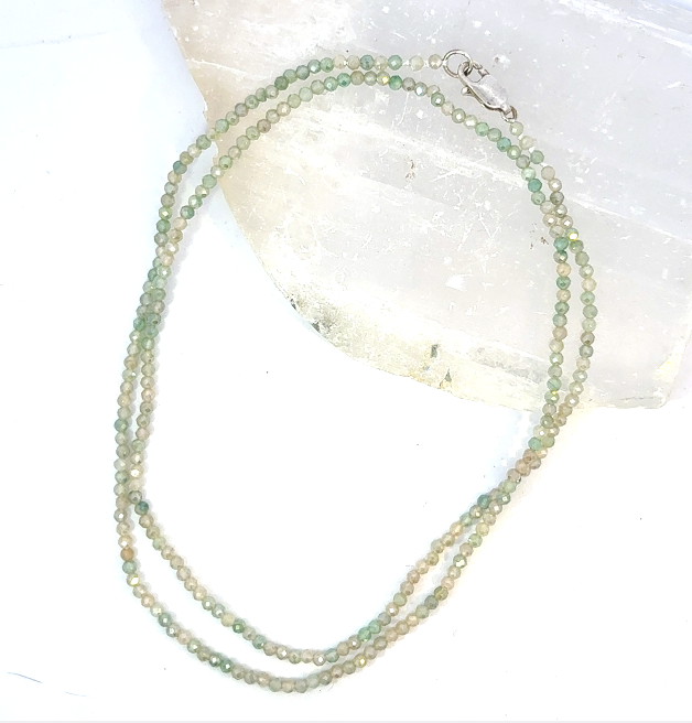 Emerald and Black Ethiopian Smoked Opal with 18kyg beads, 18 kyg lobster clap, 17″