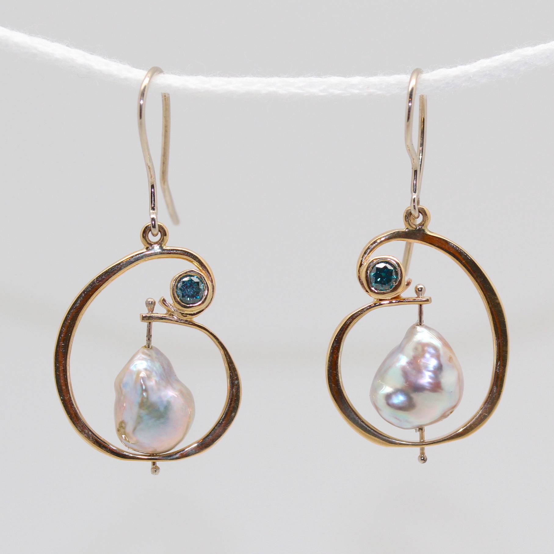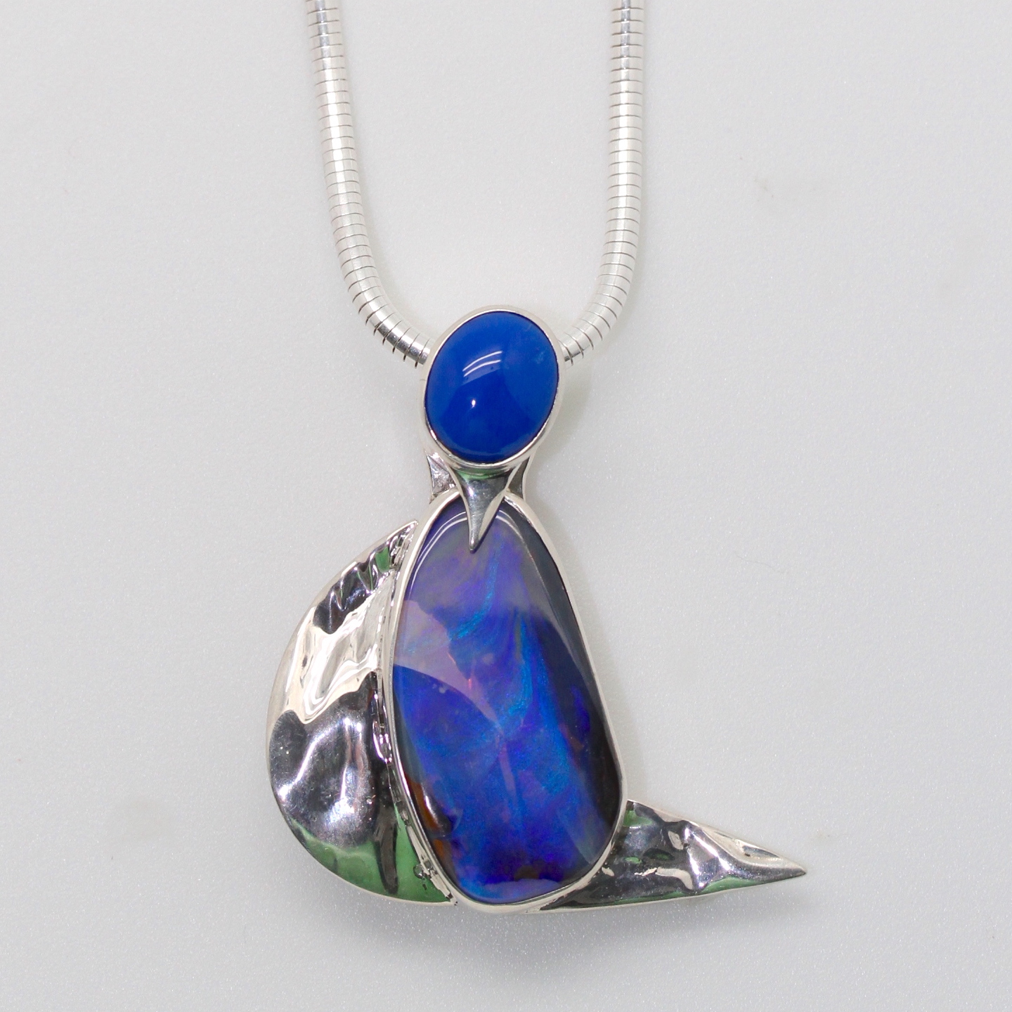 Inspired by the bluebird that has built a nest outside my Ithaca Green Door Studio. Cerululite, Sterling, 14KT.
