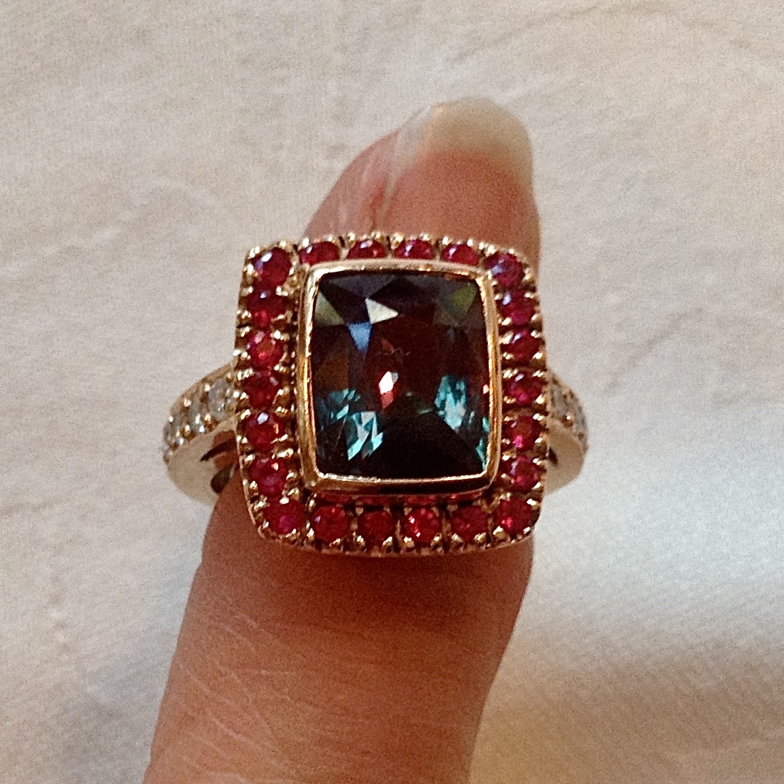 Custom Design Alexandrite, Rubies & Diamond Gold Ring
