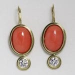 Custom 14KT yellow gold, diamond, indicolite tourmaline jackets worn on 14kT yellow gold and diamond huge hoops.