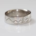 Custom 14KT white, yellow and pink golds, emerald cut diamond, hammered, distressed finish.