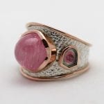 18KT yellow gold, gold nuggets, emerald and diamond ring.