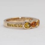 14KT Rose gold with shared prong set rubies. Eternity band, size 6.5.