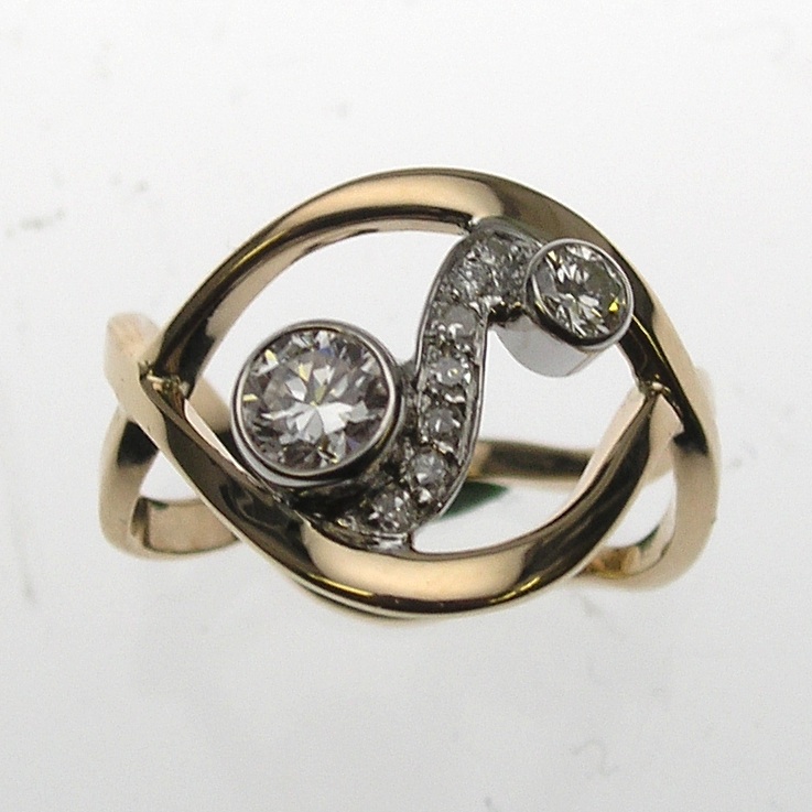 14KT Yellow and White Gold, Client’s Family bezel and bead set Diamonds.