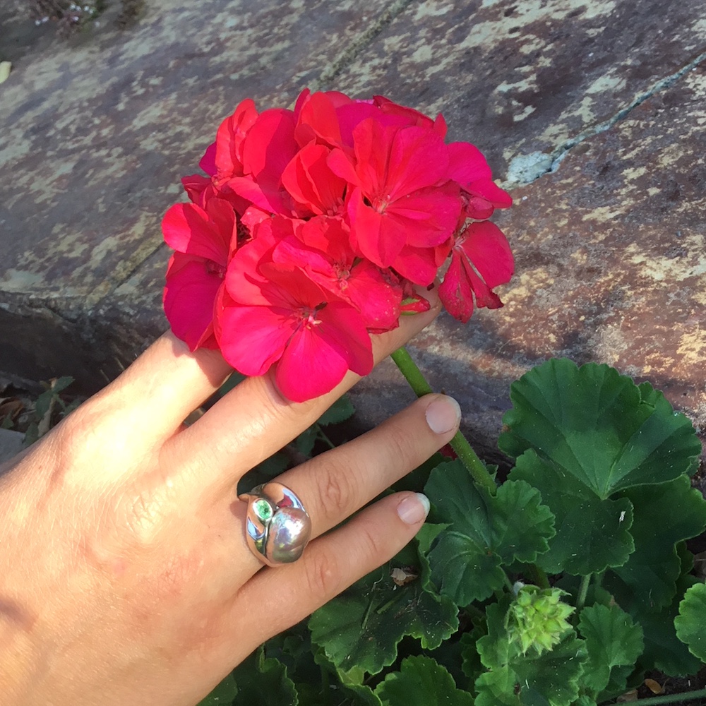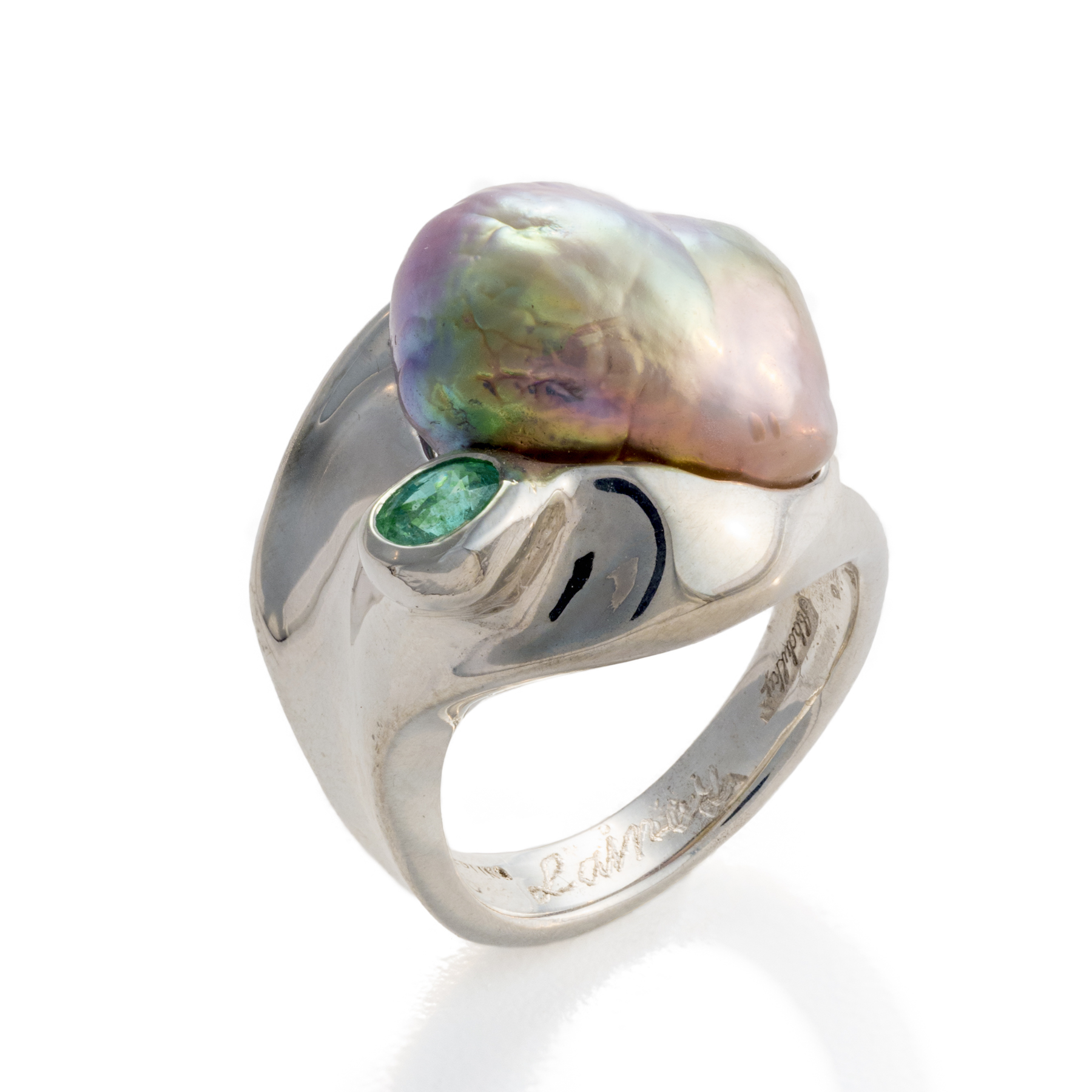 Sterling, lustrous multicolor baroque Pearl, Paraiba, sterling. Size 7.