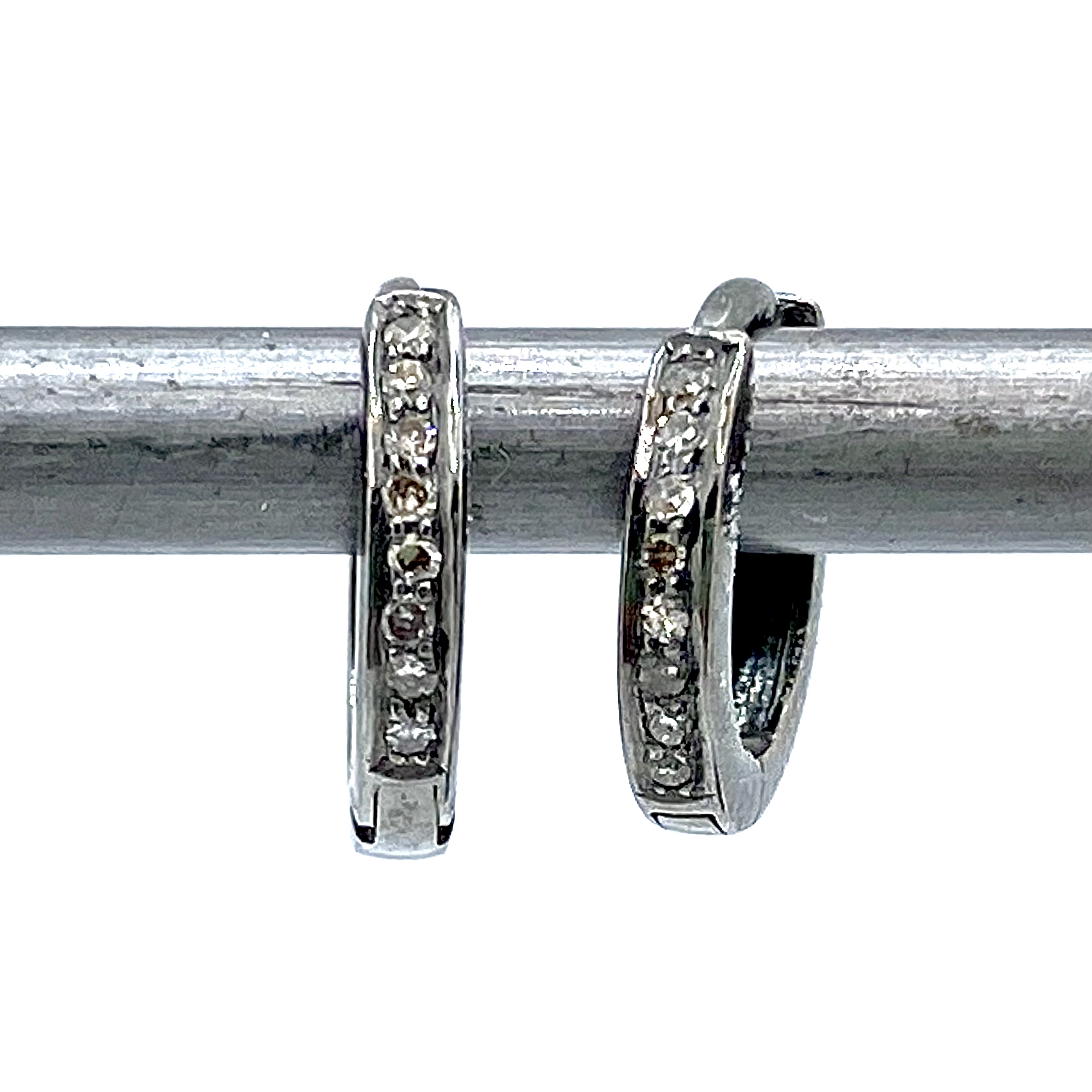 Huggie Hoop with Diamonds, 14KT White Gold Black Rhodium Plated, 0.25” diameter
