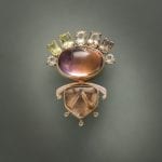 Sterling, 14KT Rose Gold, Carved Abalone Shell Face, Lavender Petal Pearls, Carved Amethyst, Phosphodorite, Amethyst Sceptor.