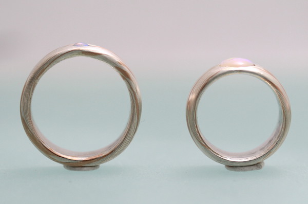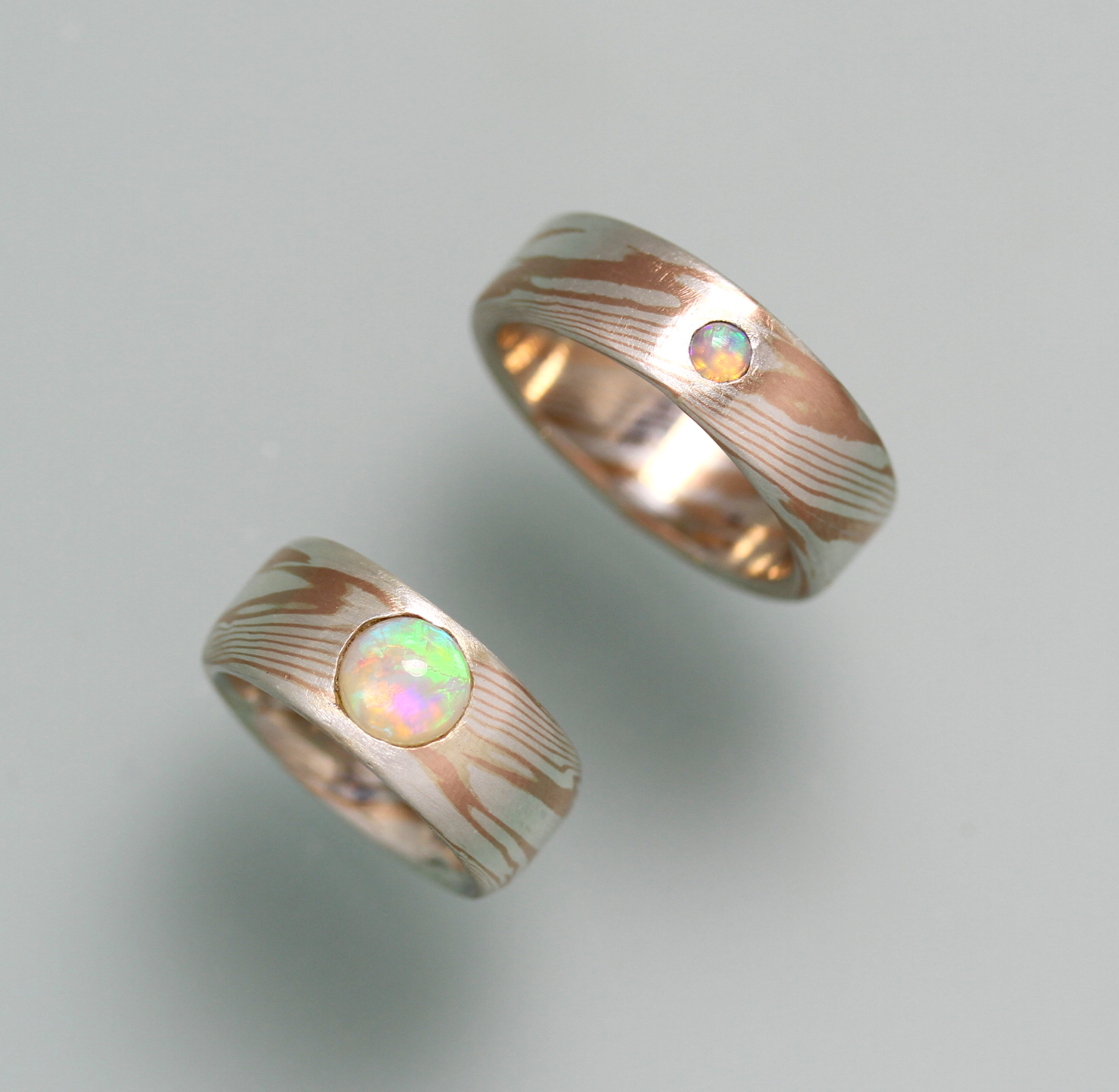 14KT White and Pink Golds, Flush set Jelly Opals.