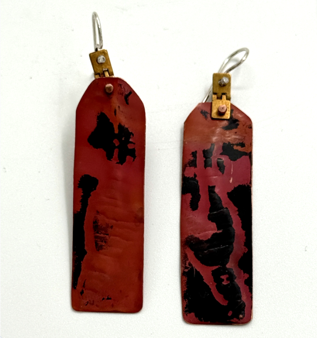Large baroque natural color metallic Pink Pearls suspend from an oxidized sterling casting of a weathered fig shell. Sterling Lever back for security, 2″ length.