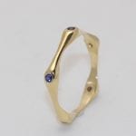 Custom 14KT Pink Gold, center stone: pink sapphire. Encircling stones: yellow sapphire and Padparascha sapphires. All natural color.