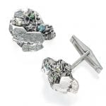 When the earth deposits iron crystals of pyrite in its native shale, we become the lucky beneficiaries. Squares of this material are set in sterling add modern elegance to your formal affair.