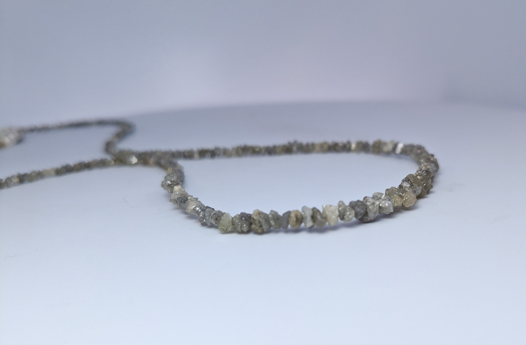 Raw natural Diamond crystal bead graduated necklace weighing approximately 21.30ctw, 18″ long with pearls and a sterling silver clasp.