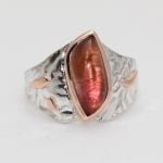 Custom rose cut Amethyst ring with sterling and 14KT pink gold accents.