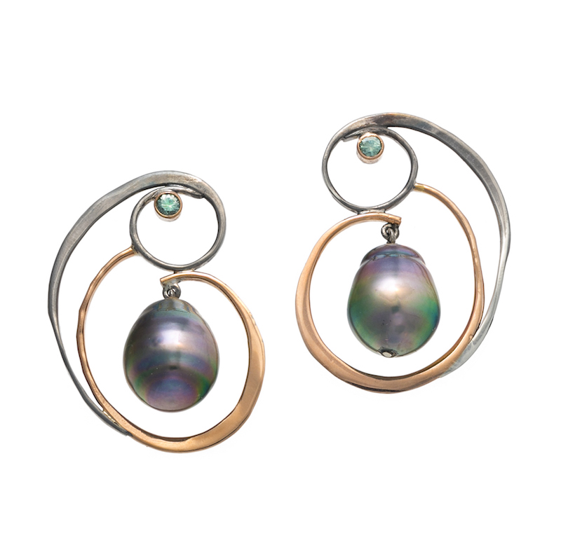 Black Rhodium, 14K rose gold, Tahitian pearl, blue diamond.