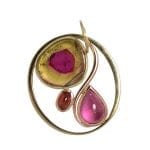 Bi-color Tourmaline, Indicolite, Garnet, 14K rose gold. Chains not included.