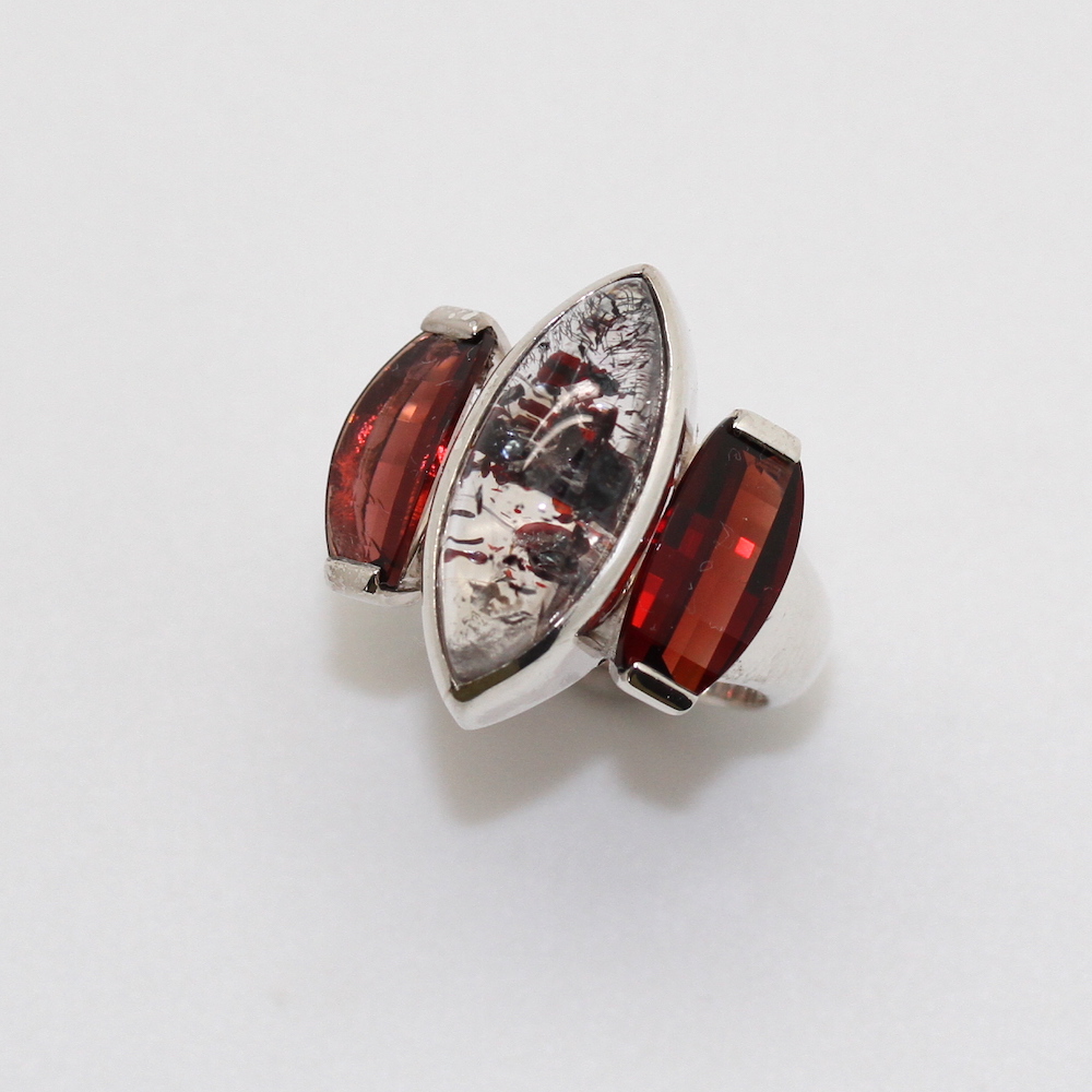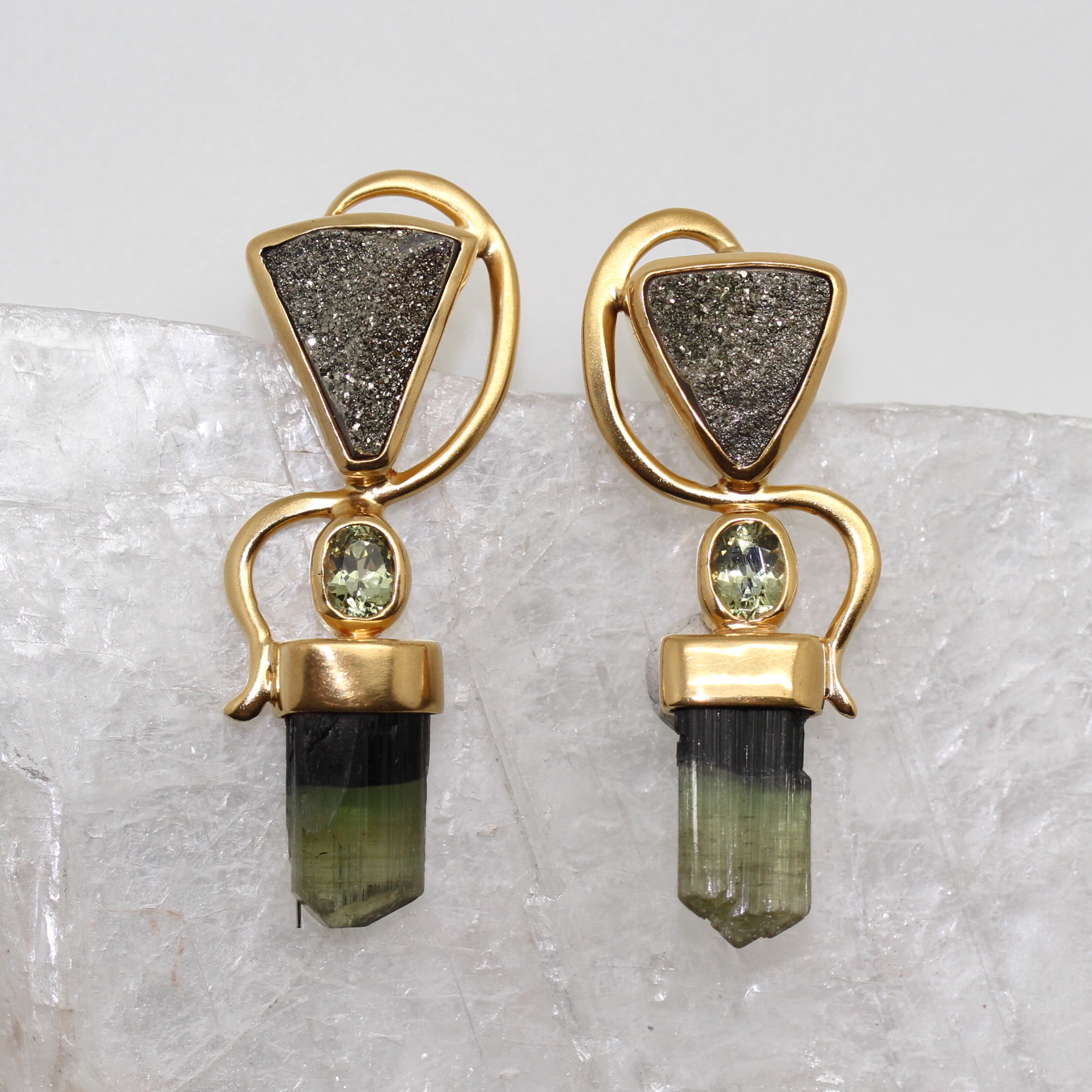 Rainbow Hematite, Mali Garnet, Black/Green Bi-Color Tourmaline, 18K Heavy Gold plated sterling. Post earrings