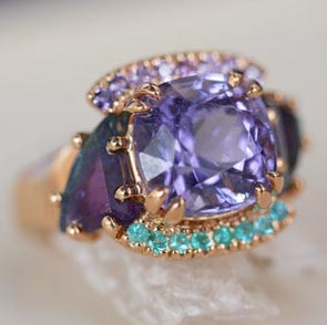 18KT Pink Gold, Cuprian (Purple) Tourmaline, Purple Sapphires, Paraibas, Paraiba Crystal accents.