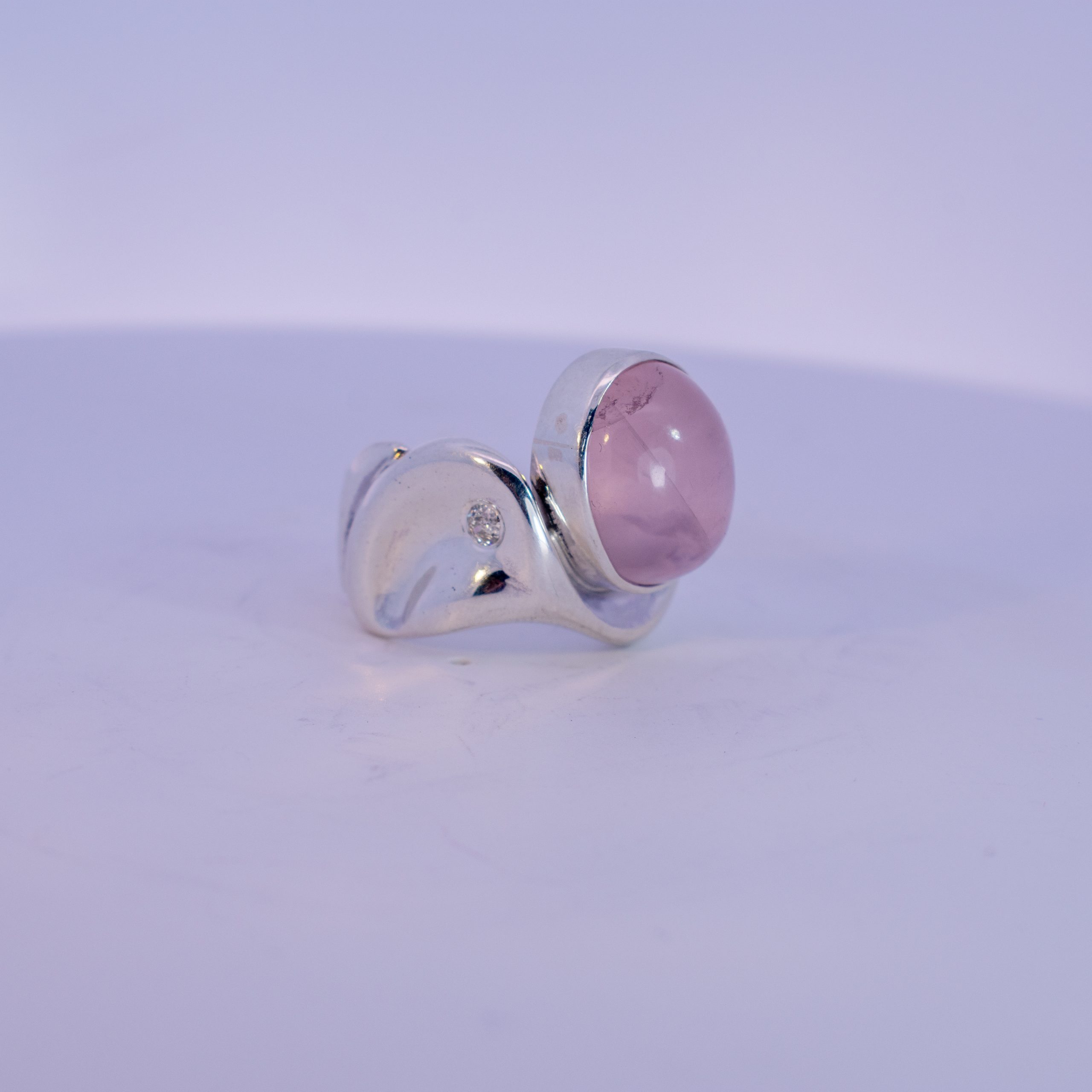 Transformation Ring, set with 13.64ct Oval Rose Quartz cabochon and 0.10ct Round Brilliant cut Diamond in sterling silver. Size 8.5