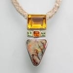 14KT Pink & White Gold, Fossil Opal Shell, Natural Color Pink Freshwater Pearl, Morganite.