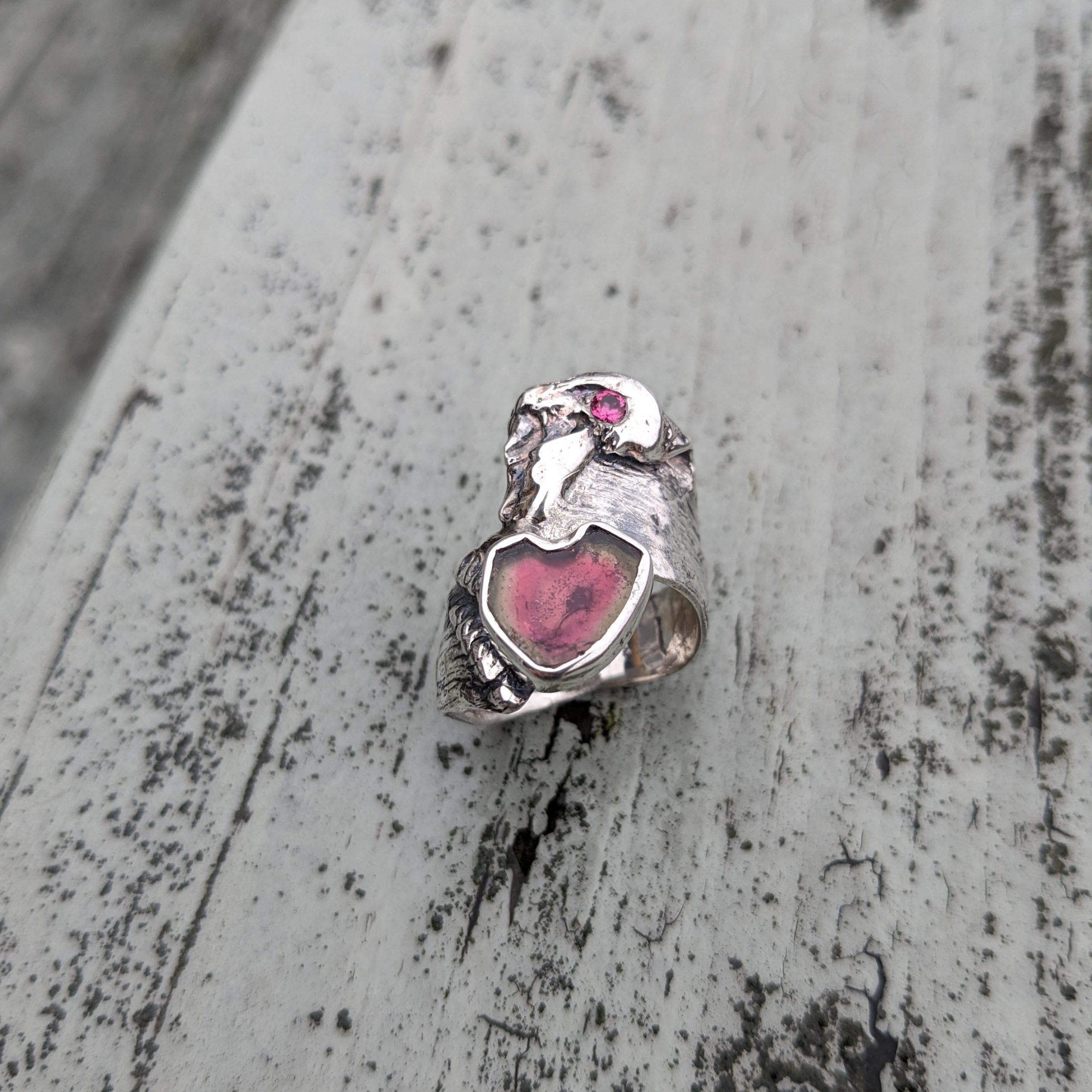 Watermelon Tourmaline Heart Shaped – Angelwing Shell Fragment Ring